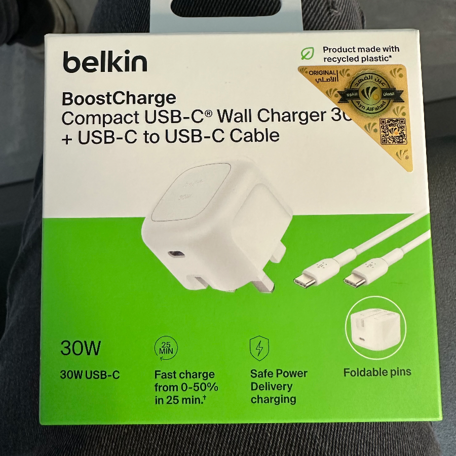 تقنية الشحن السريع: شاحن الحائط USB نوع سي بقدرة 30 واط يشحن هاتف ايفون 16 بسرعة من 0-50% في 26 دقيقة. يستخدم تقنية إمداد الطاقة القابلة للبرمجة (PPS) لضبط جهد الخرج ديناميكيًا.