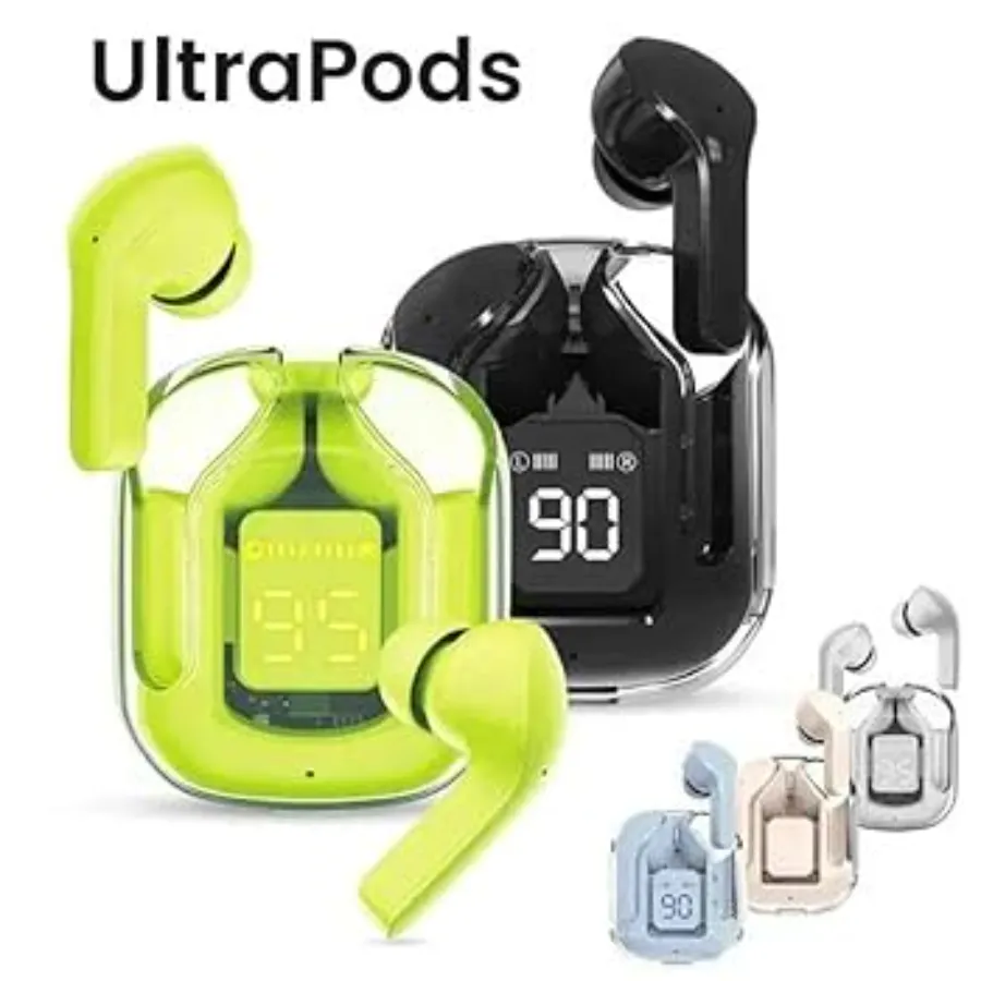 التصميم: تتميز بتصميم شفاف أنيق لعرض السماعات داخل العلبة، مع شاشة LED رقمية لعرض مستوى البطارية. كل سماعة تزن حوالي 3 غرامات، مما يجعلها خفيفة الوزن ومريحة للاستخدام لفترات طويلة.